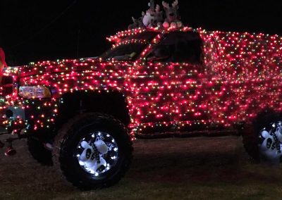 To your left as you enter the main gate you will see the adorable Penguins frolicking at play in front of the old fairgrounds Christmas barn. Penguins were hand cut by local Christmas company (VirginiaLights.com). 20 foot Santa and Snowman are also to the left as you enter.