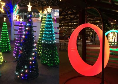 We highly recommend you take in the “Around the World” synchronized light show in the family pavilion this show was designed by a local small Christmas lighting company and is programmed to 5 popular Christmas songs. Additionally, there are frolicking holiday penguins (also locally built), a 30 foot digitally lit tree, a snow tube/snow fall pavilion, lighted holiday maze (also for CHILDREN and their families), a 14-foot lit world, a fountain display, Nativity, 12 days of Christmas, Christmas train, firepits, local venders, light up swings a holiday themed café and more! Visit this family-friendly holiday event and celebrate the spirit of Christmas!